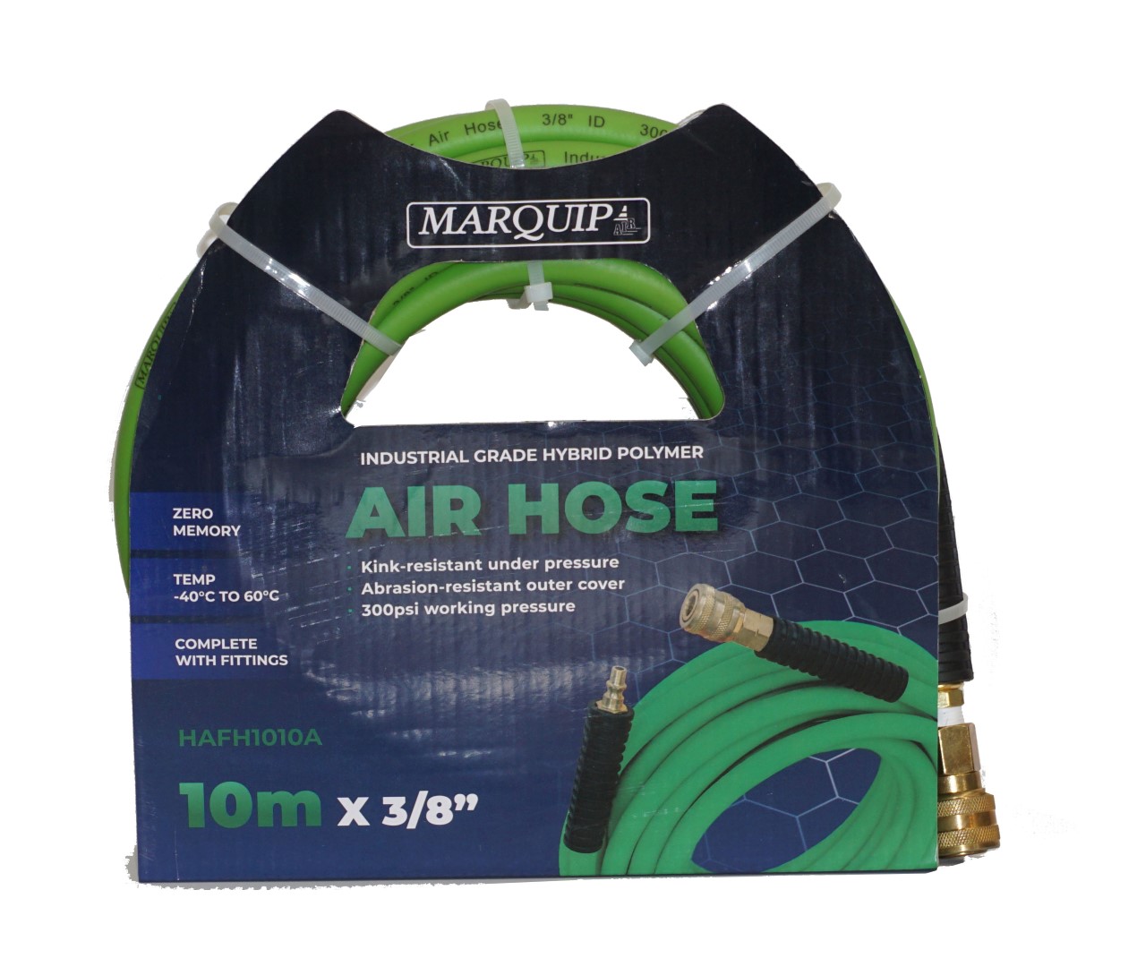 This Platinum 10M Air Hose is a high-quality piece of equipment that can be used with a wide range of pneumatic tools in a range of air delivery applications. It has a 9.5mm inner diameter and 16.0mm outer diameter, and is rated for a pressure of 200psi. It features a high quality ARO coupler and male adaptor, serving to make it very easy to connect and use